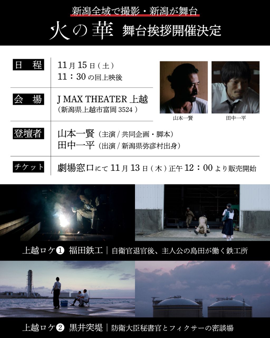 【上越】11月15日(土)『火の華』舞台挨拶付き上映会 実施決定!