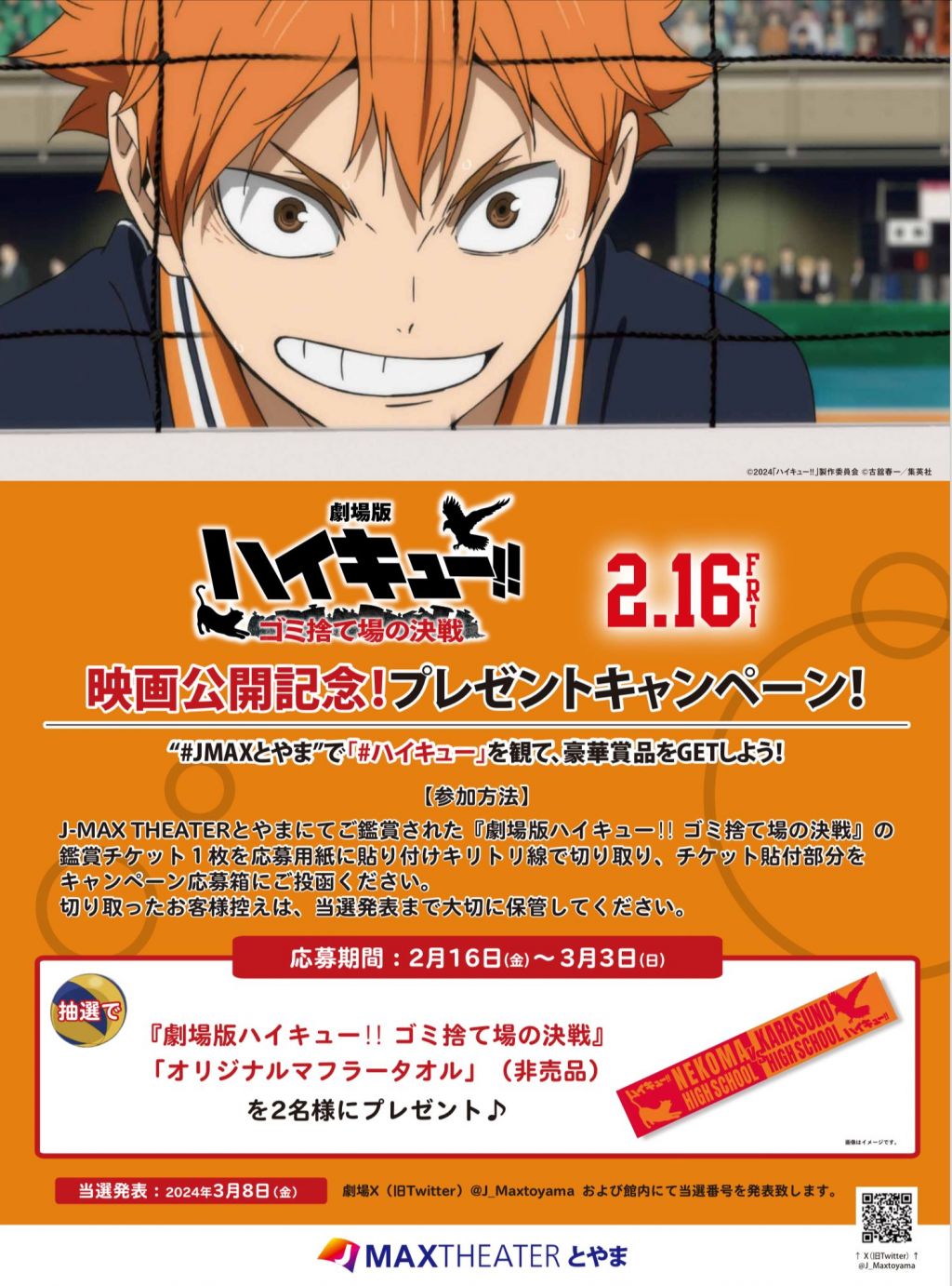 【とやま】『劇場版ハイキュー!! ゴミ捨て場の決戦』2/16(金)公開記念!プレゼントキャンペーン開催!
