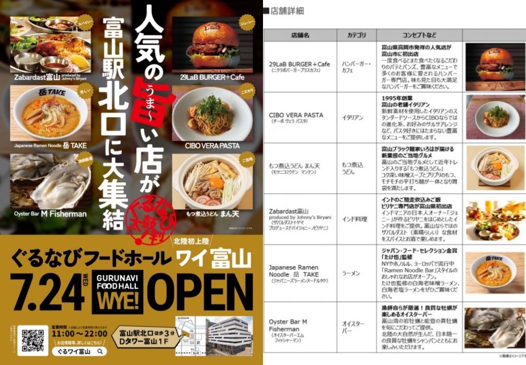 7月24日(水)オープンのDタワー富山1Fフードホール『GURUNAVI FOODHALL WYE 富山』で、J MAX THEATERとやまの半券サービスを始めます!