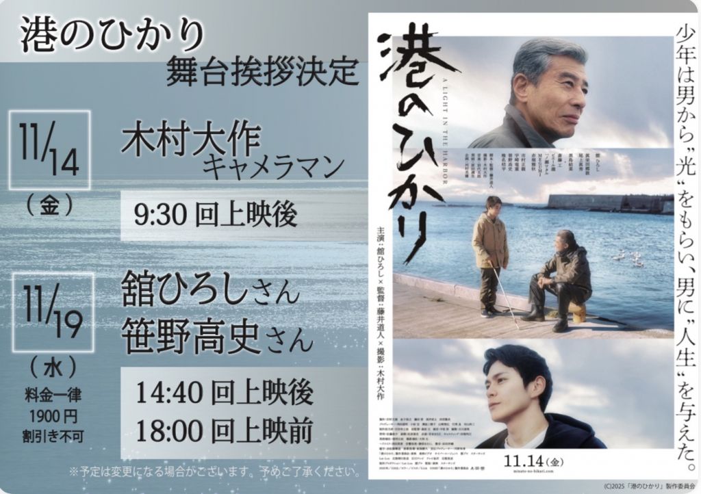 映画『港のひかり』舘ひろし・笹野高史舞台挨拶付き上映会を下記劇場にて実施いたします!