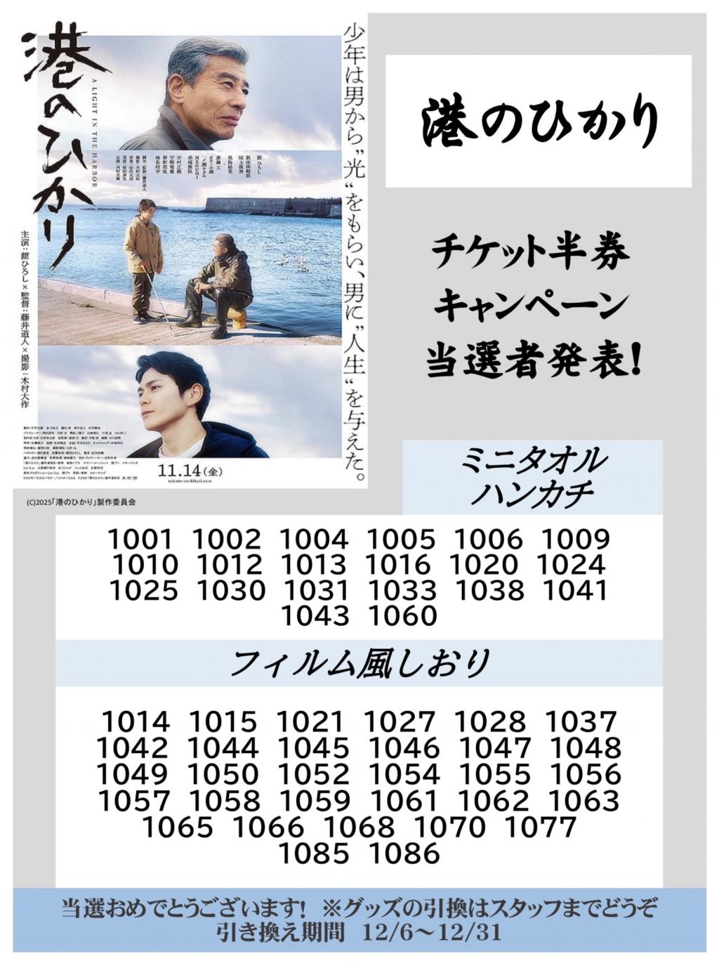 【とやま】映画『港のひかり』映画公開記念!プレゼントキャンペーン 当選番号発表!