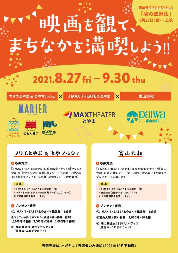 【とやま】『映画を観て、まちなかを満喫しよう!!』キャンペーン開催中!!富山大和×J MAX THEATERとやま