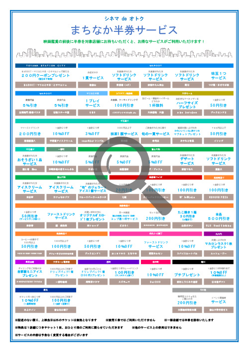 ※各種招待券、スタンプカード鑑賞はご利用頂けません。詳しくはスタッフにお尋ね下さい。